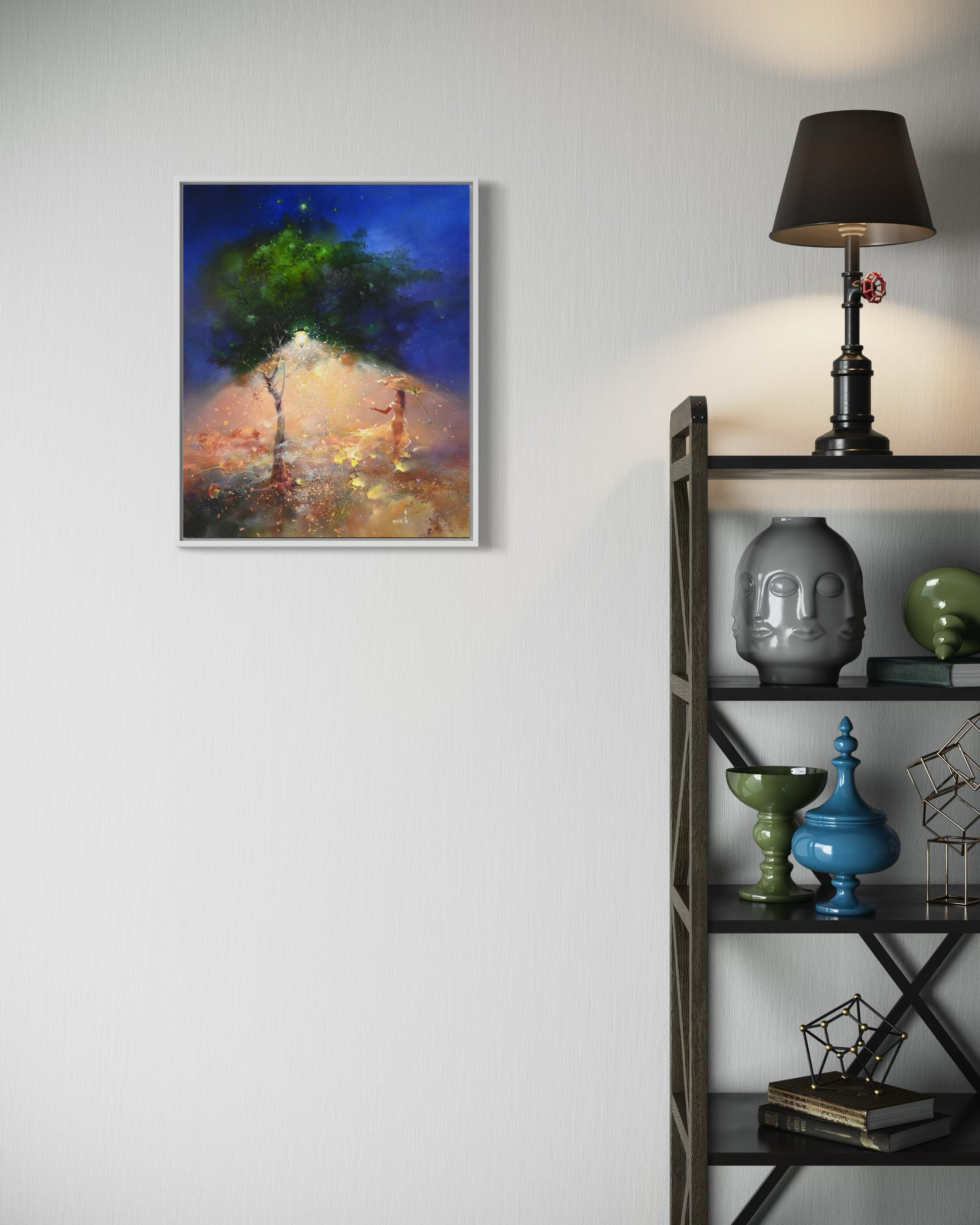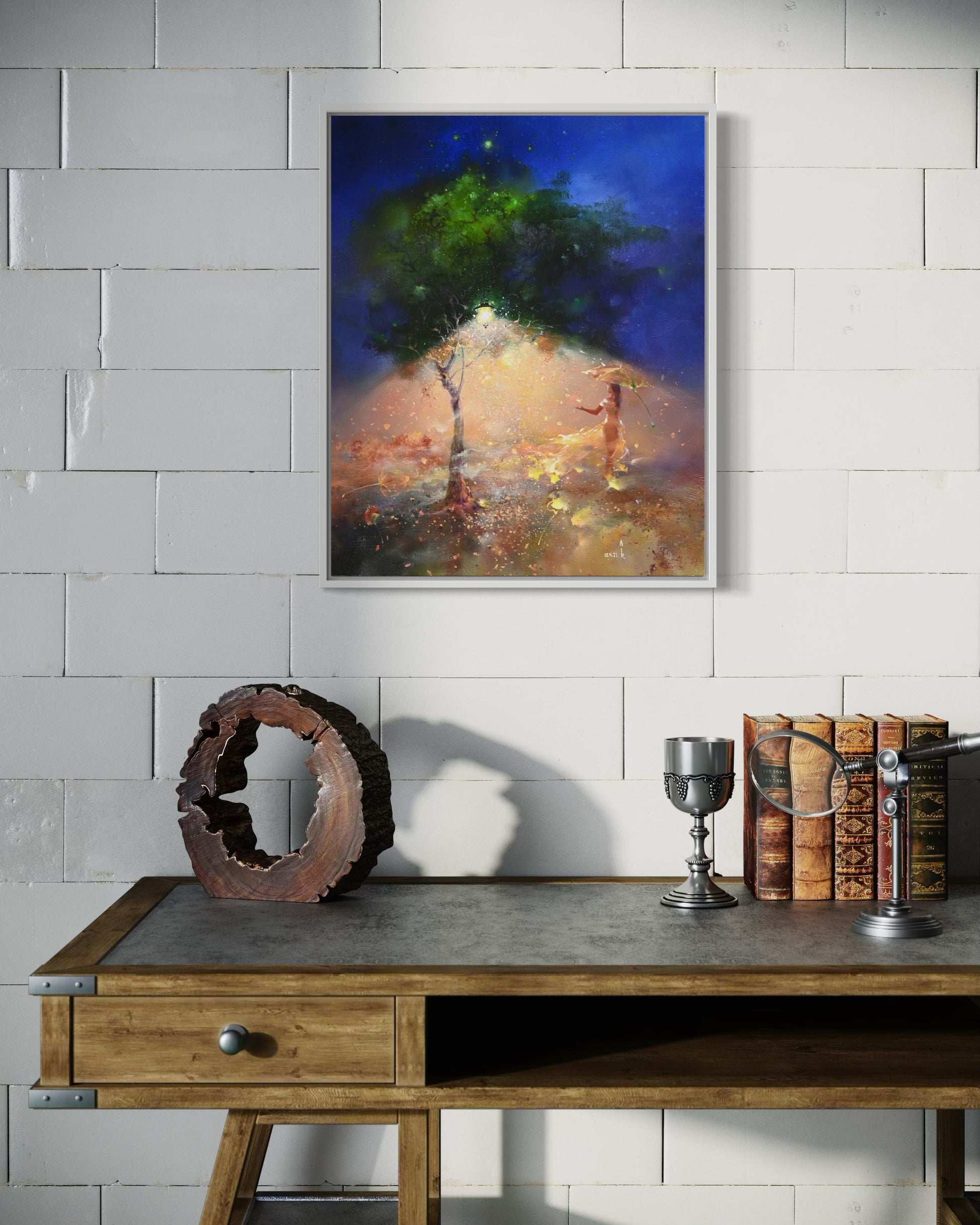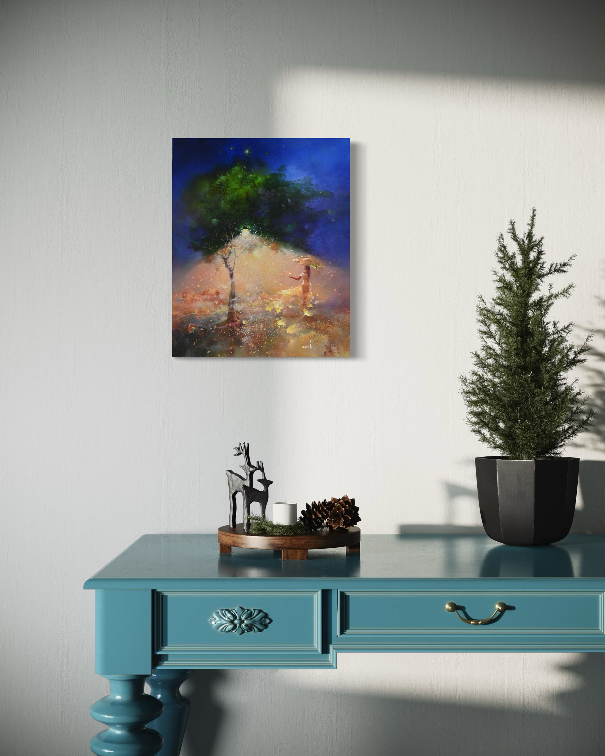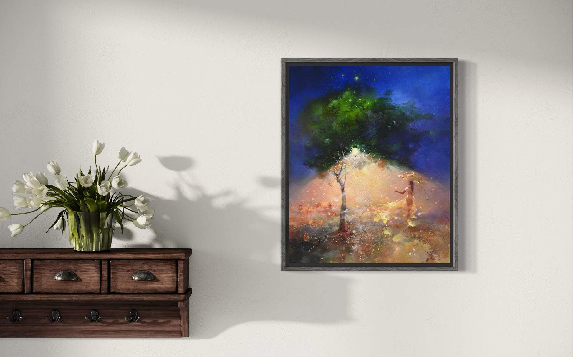 She did not expect to dance, but under that glowing tree, with leaves swirling like golden confetti and stars watching quietly, she twirled. Just for a moment, the night was hers alone.