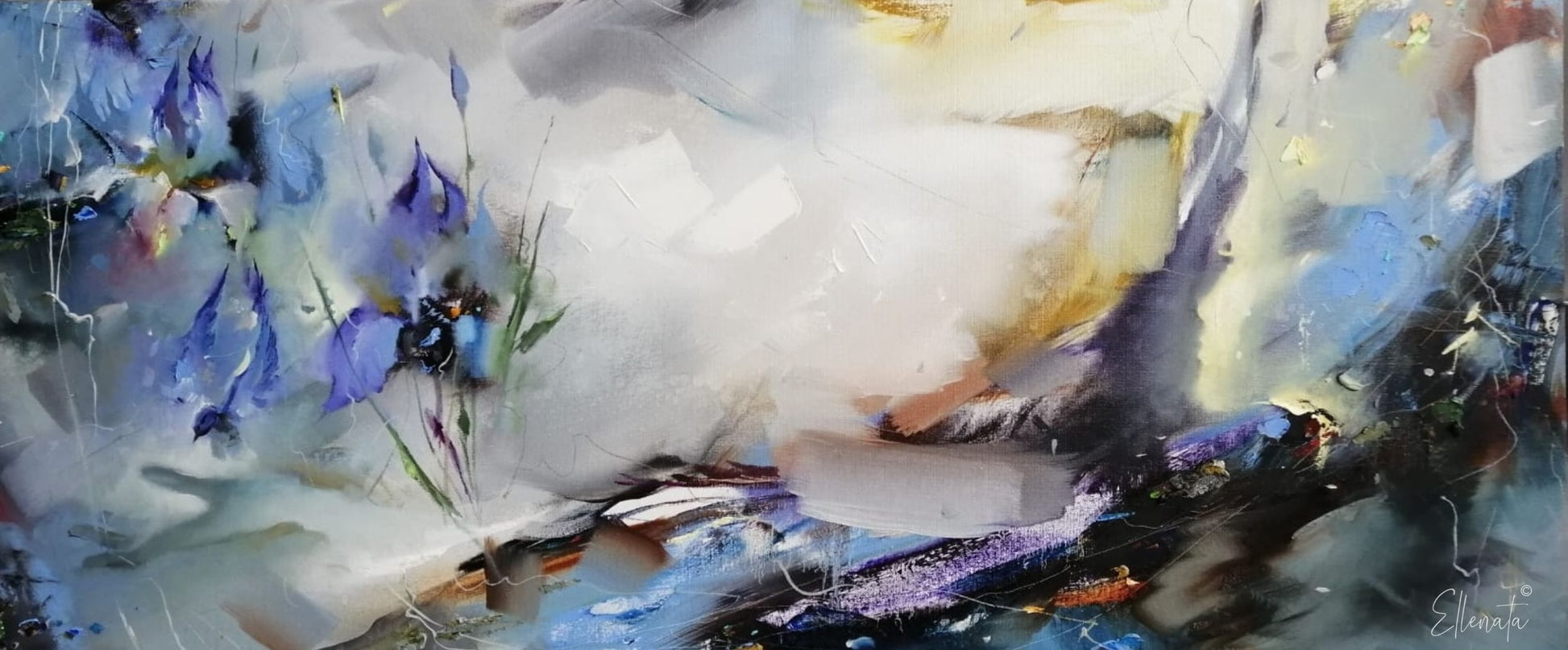 Soft strokes and cool hues give way to a fleeting shape, like a blue bird in mid-flight, gliding through a dream of mist and color.
