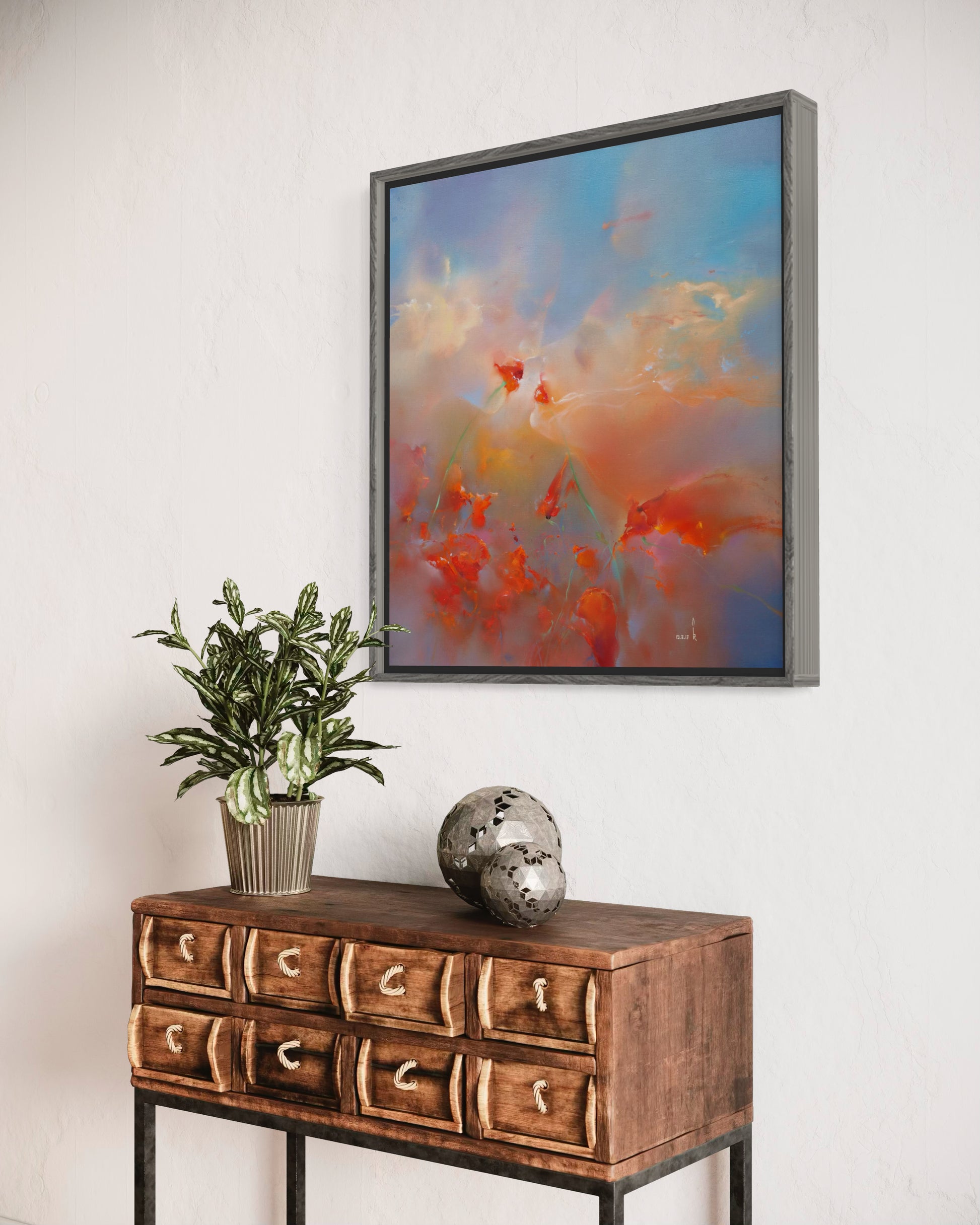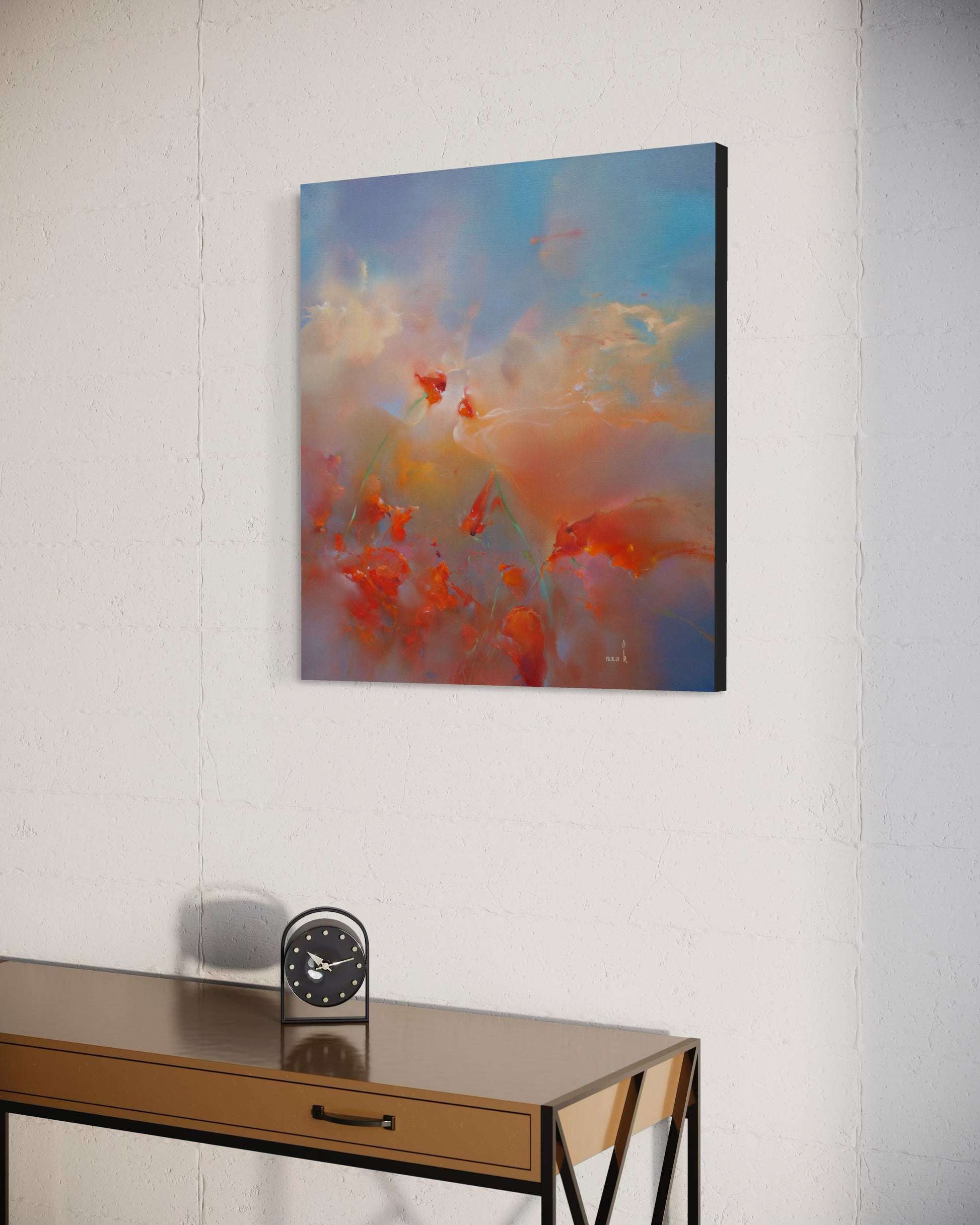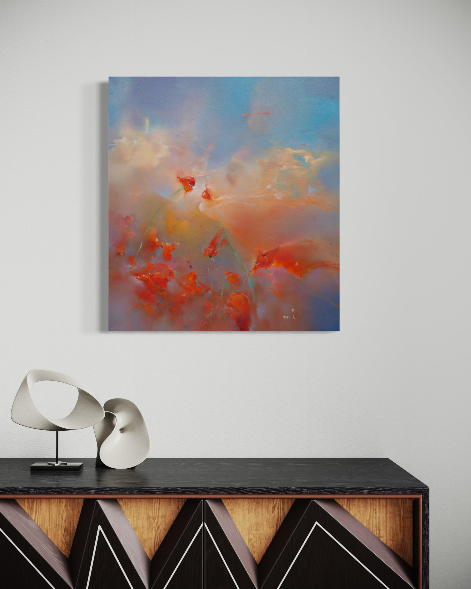 The sky exhaled gently, and poppies rose like sparks from a dream, light as whispers, carried by color, dissolving into air.