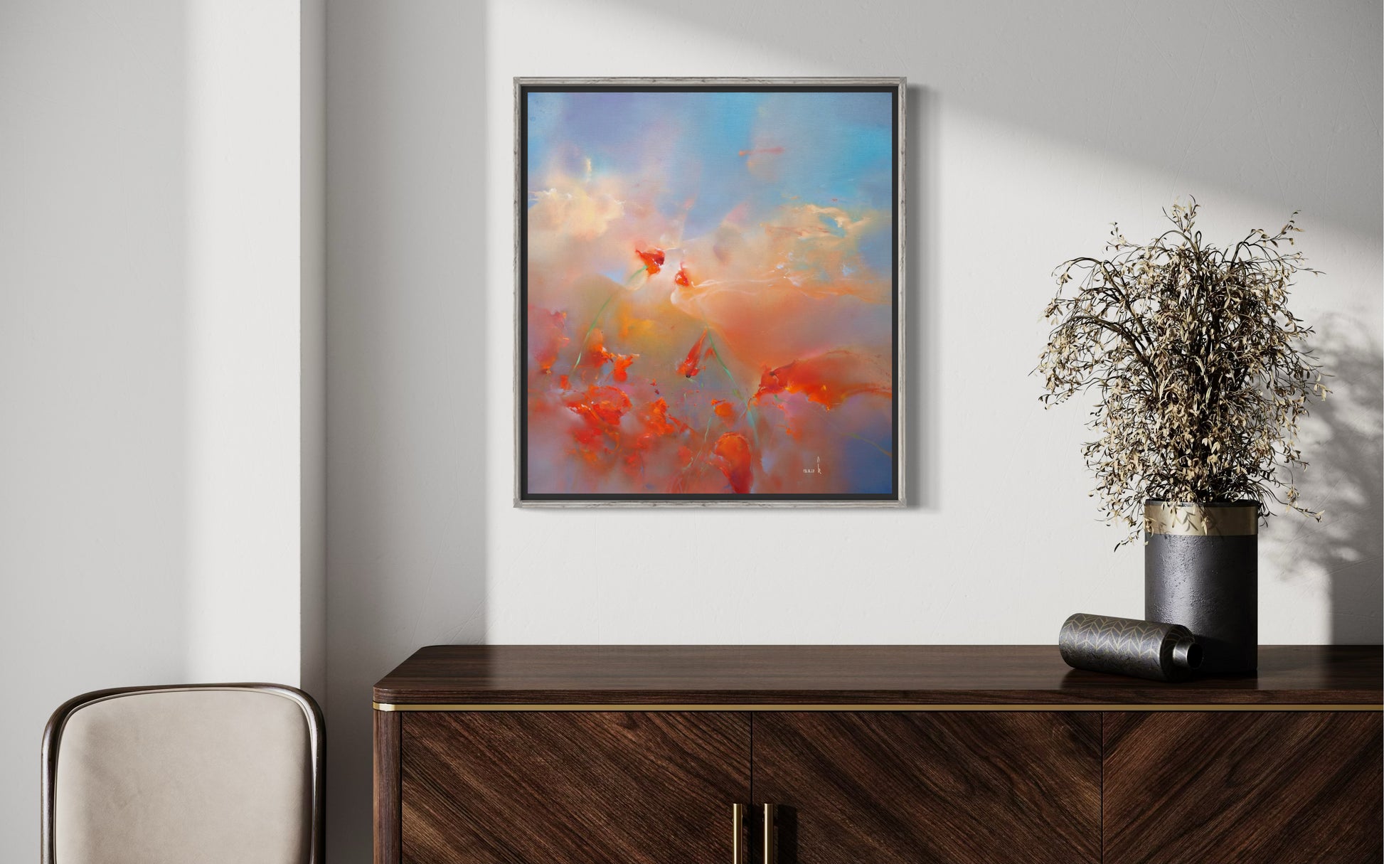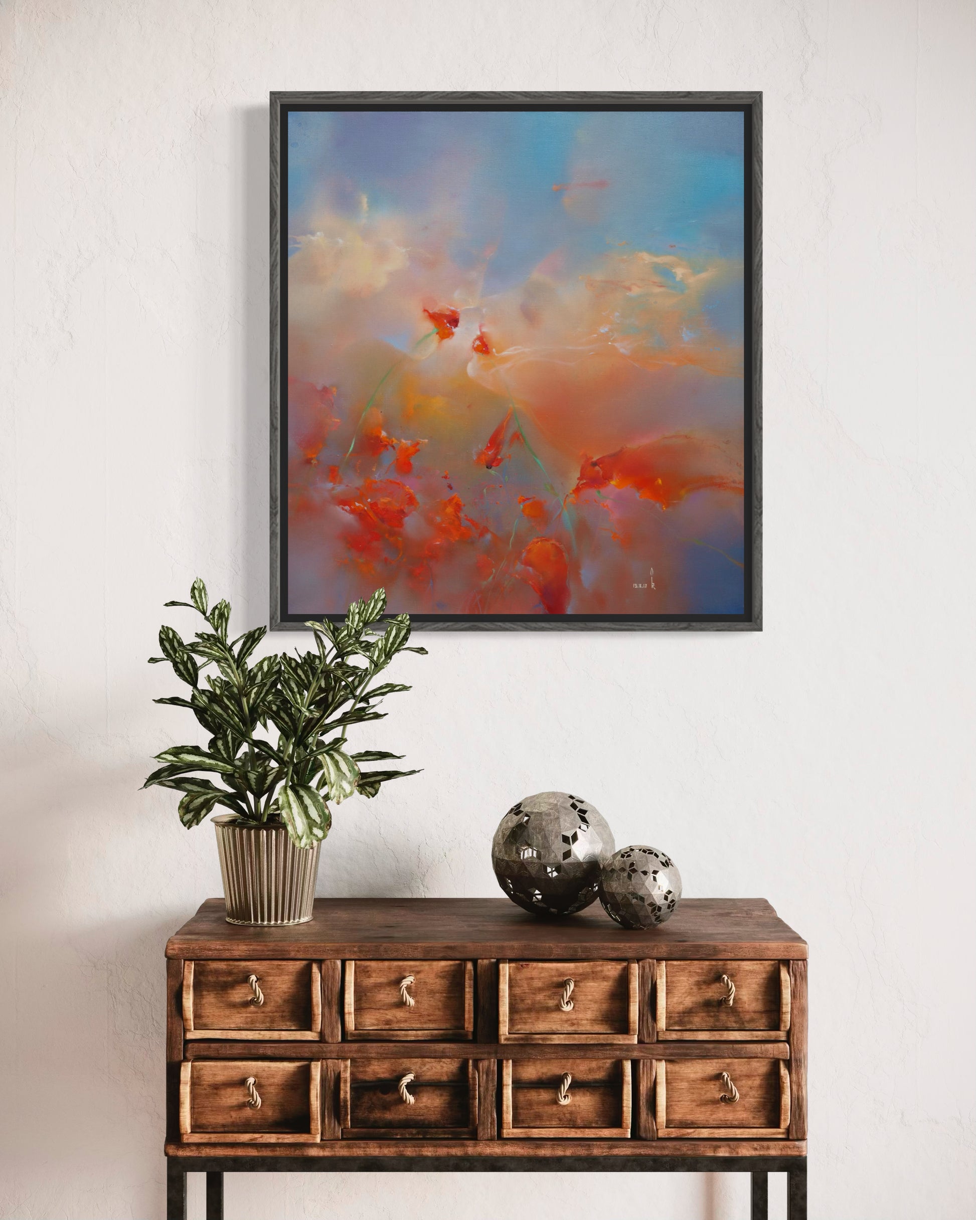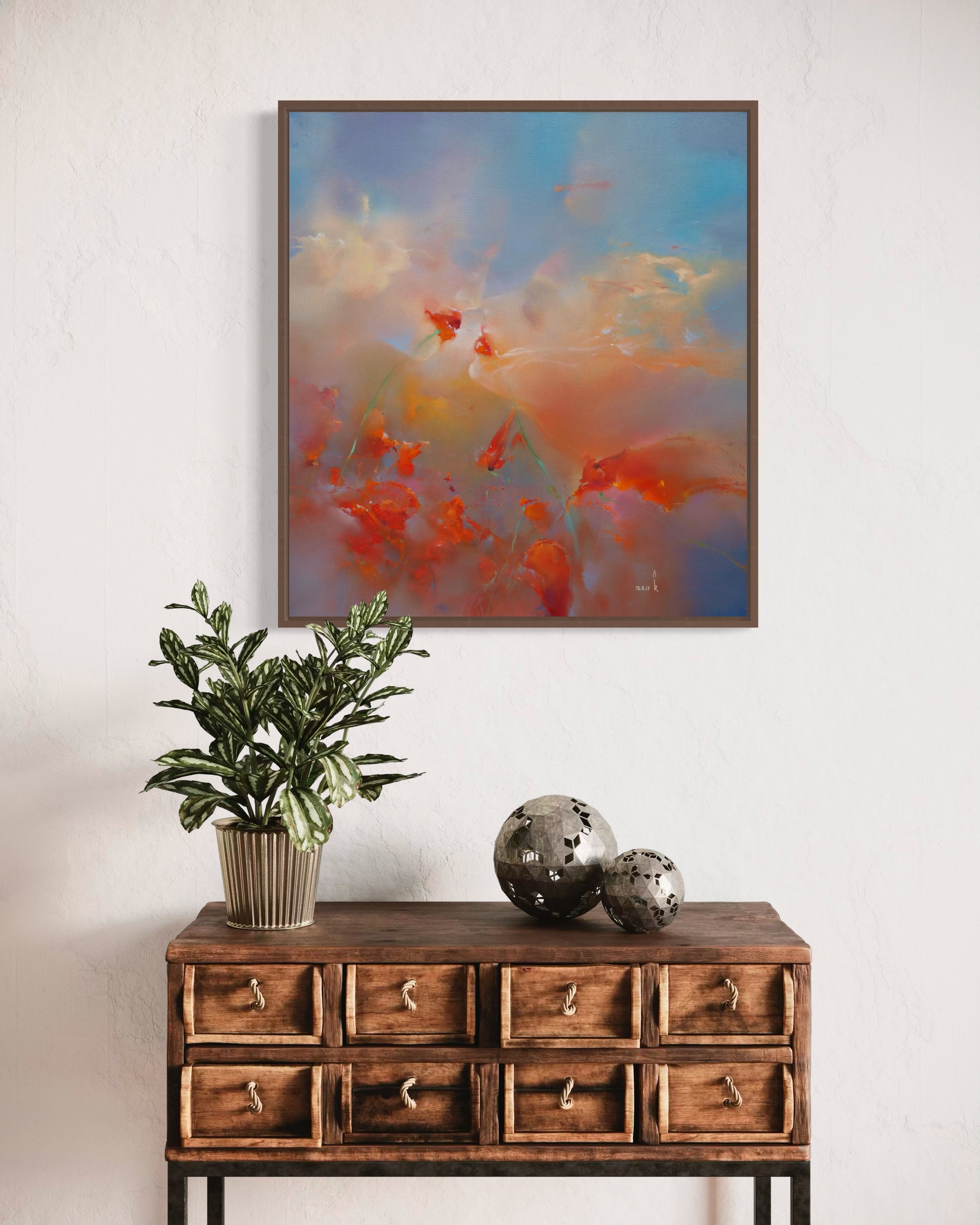 The sky exhaled gently, and poppies rose like sparks from a dream, light as whispers, carried by color, dissolving into air.