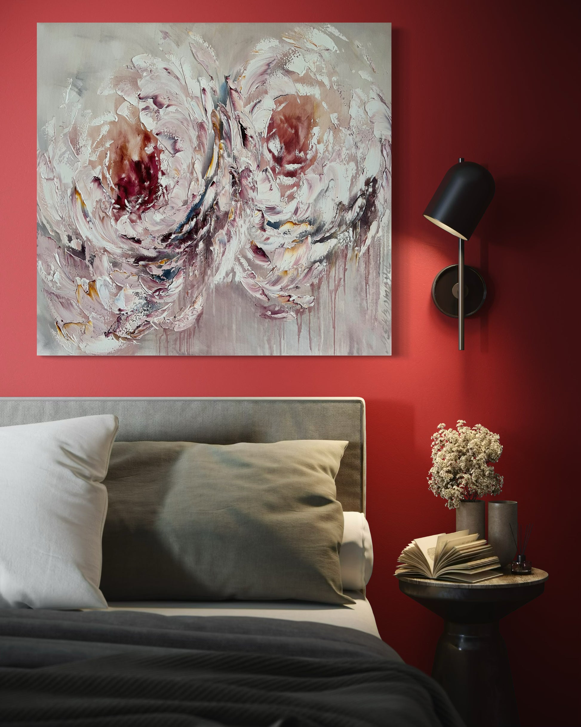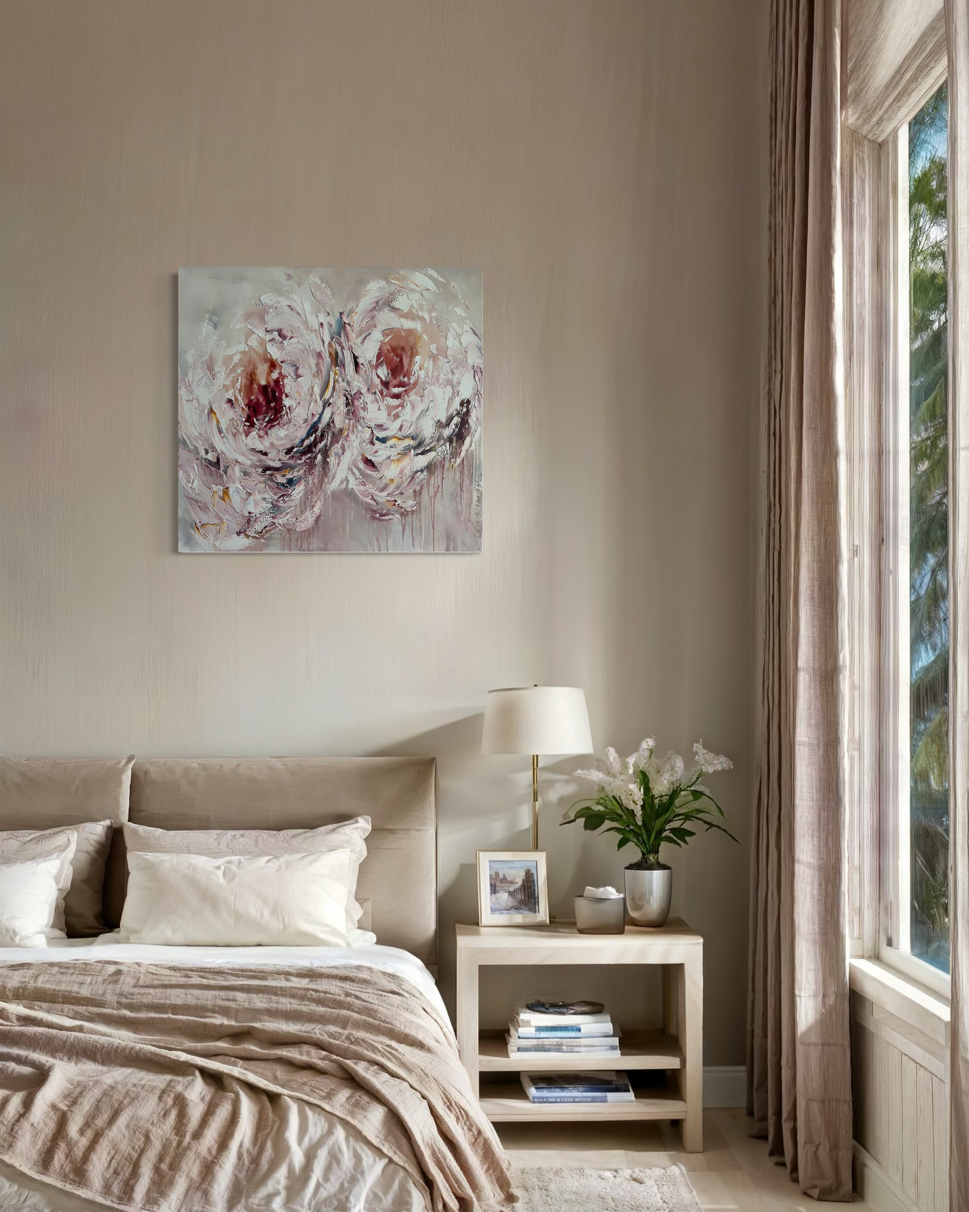 Soft as a sigh and tender as a memory, these peonies bloom in quiet motion - petals swirling like whispered promises, warm and timeless in their graceful embrace.
