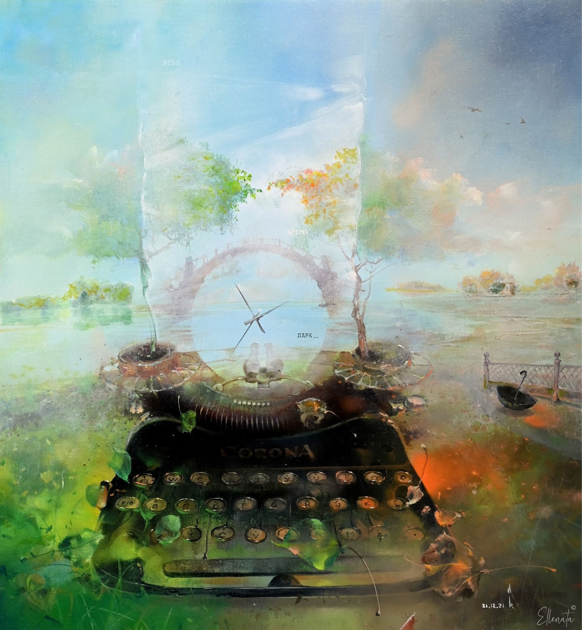 A typewriter dreams of stories never written- where seasons change with the turn of a page, and time is just a bridge between two trees. In the stillness, memories gather like leaves, waiting for someone to sit down and begin again.