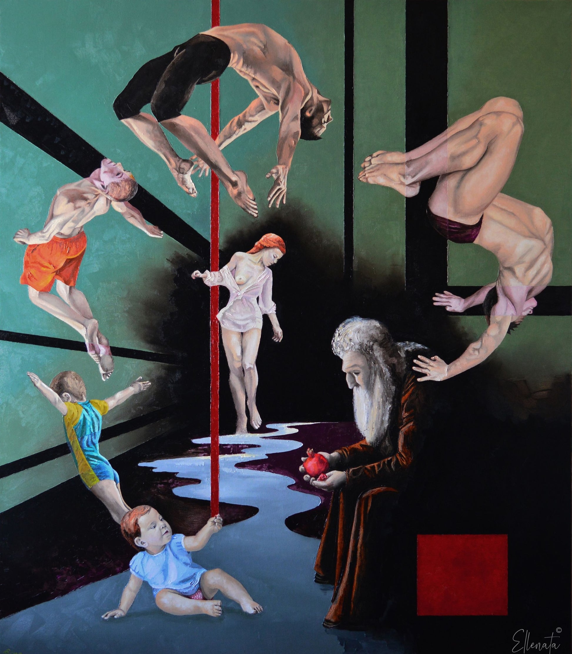 From birth to old age, we reach, fall, float — all drawn toward a single red thread. Pomegranate seed holds the weight of memory, temptation, and the start of everything.