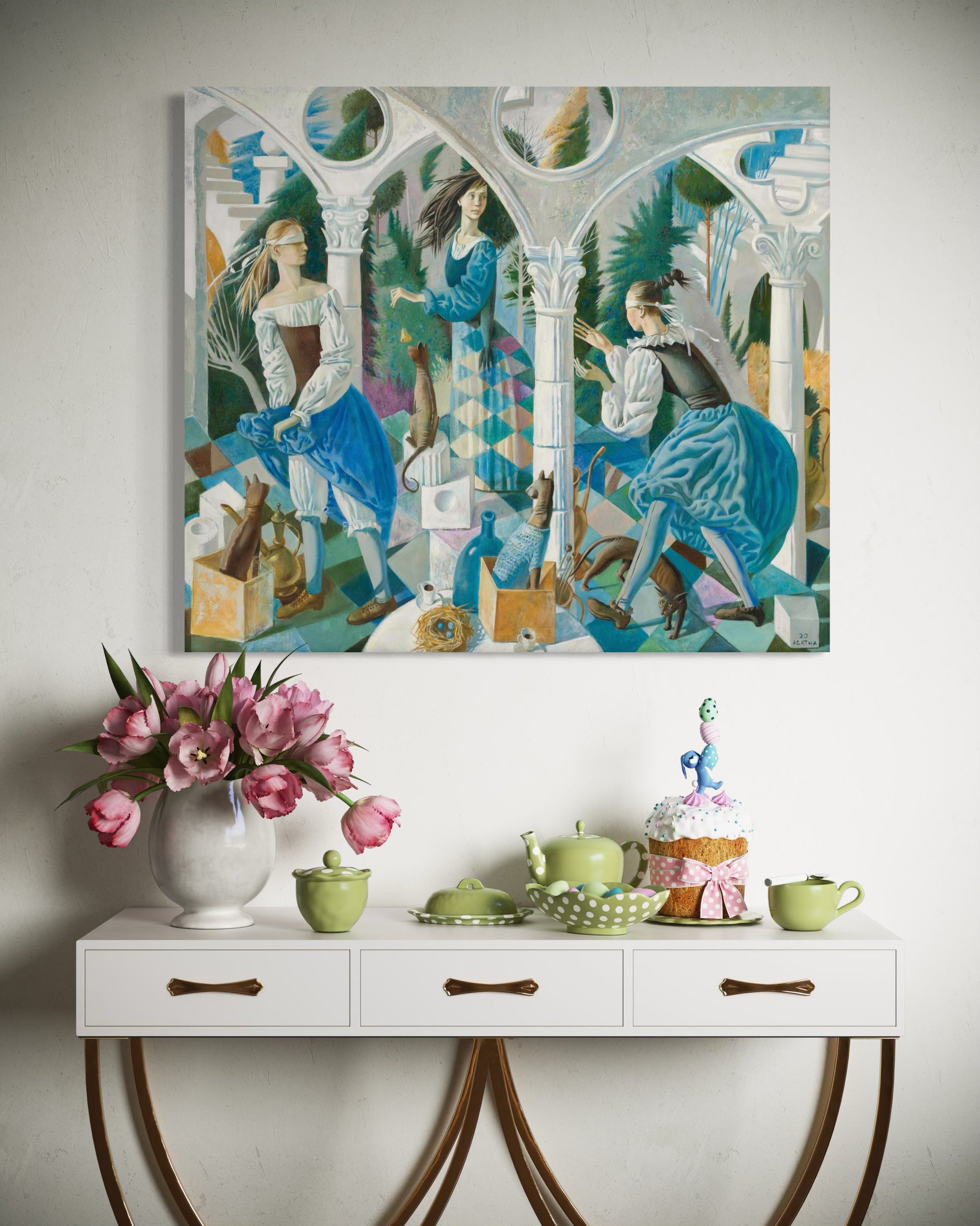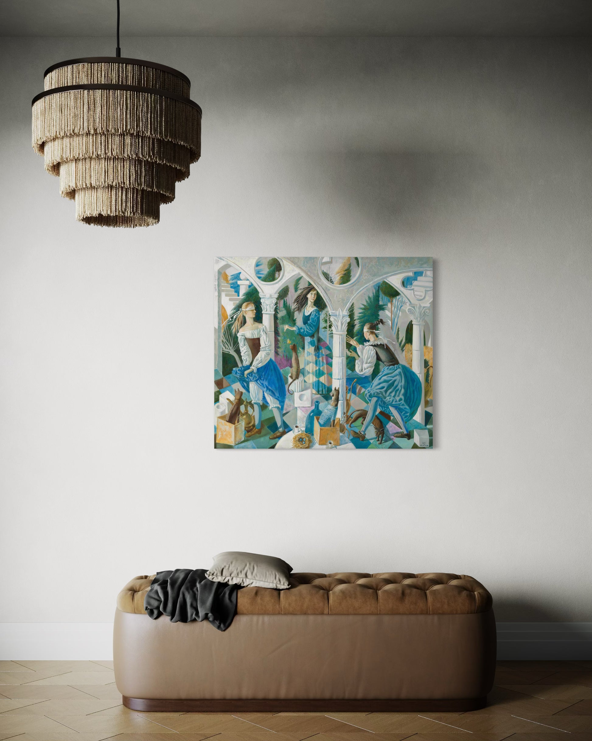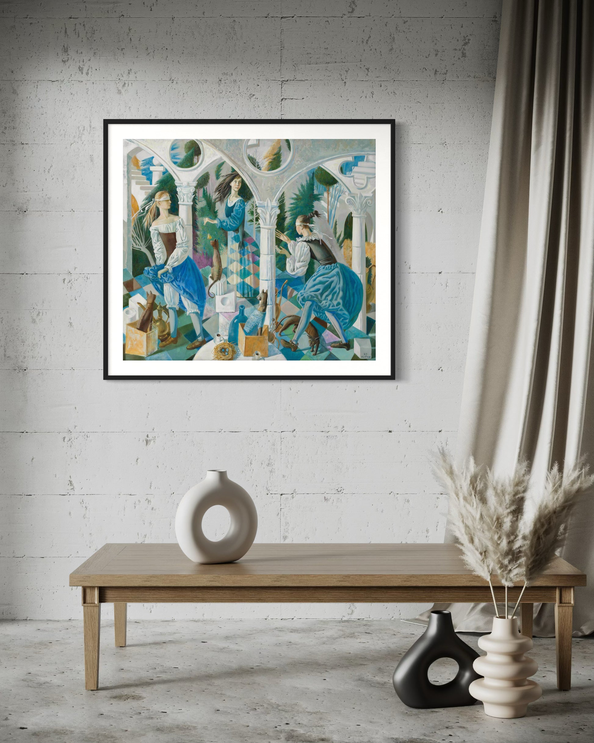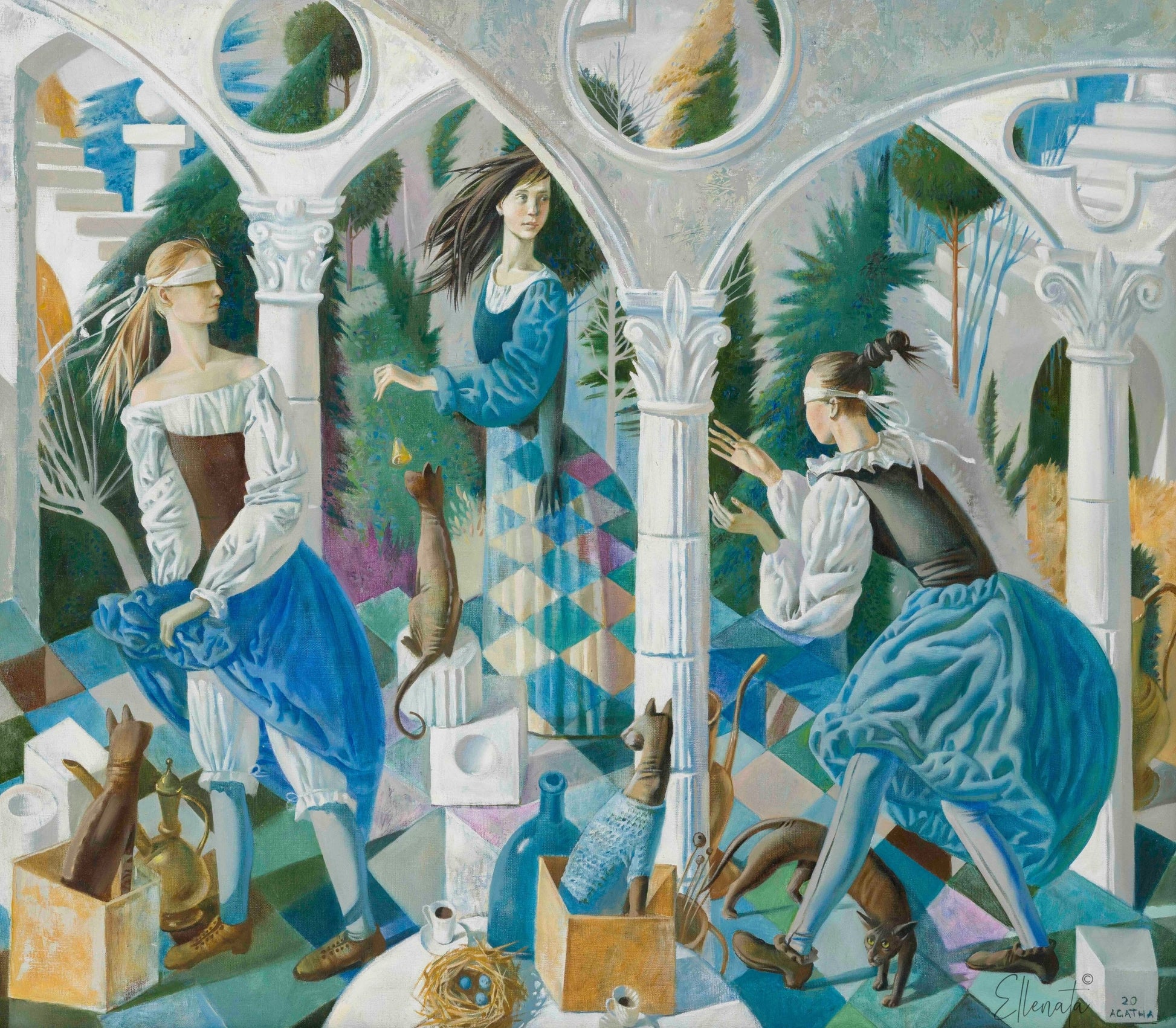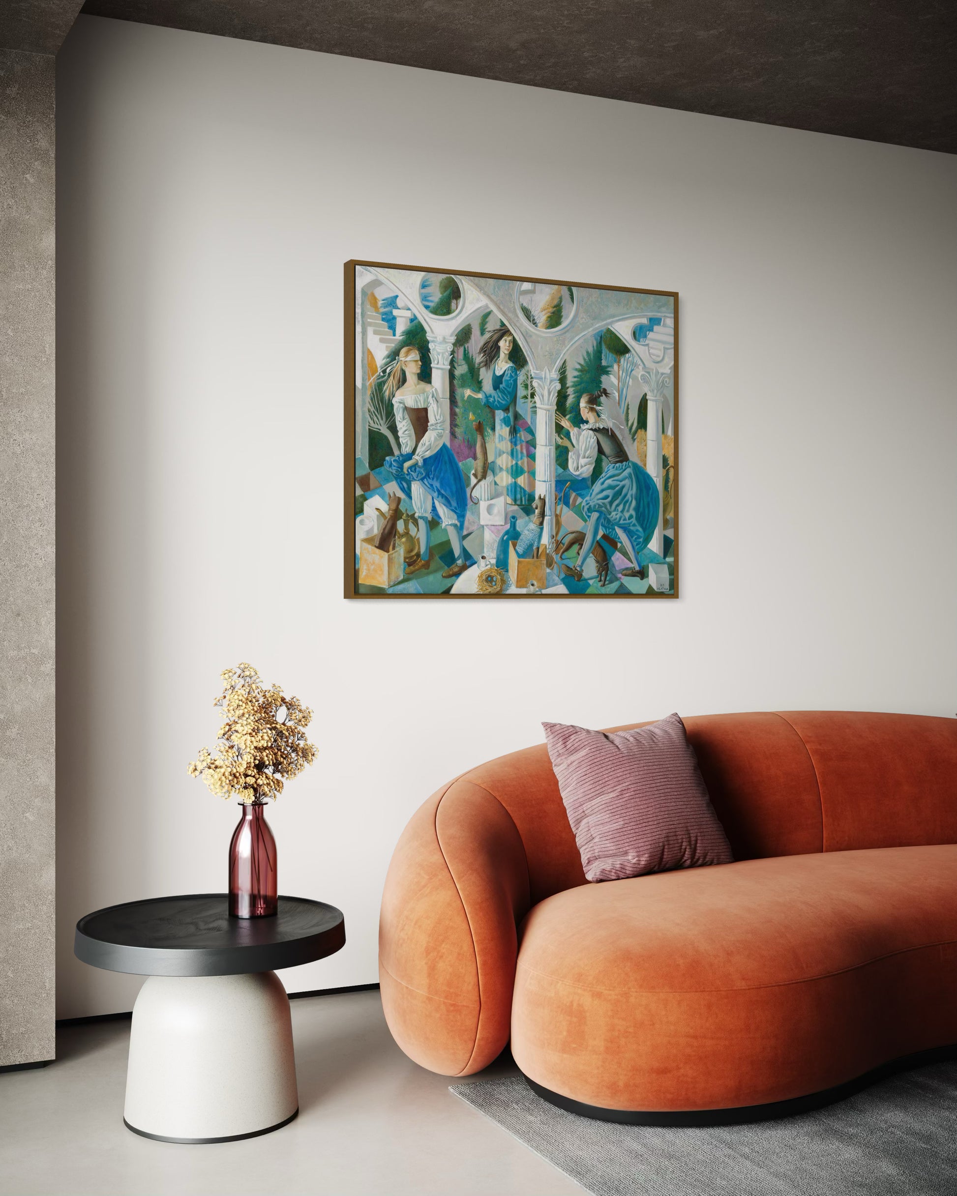 In a palace of archways and secrets, three women move with purpose - guided by cats, glances, and intuition. Objects hint at clues, yet no one speaks. The air is charged with quiet urgency, as if the next step might unlock the whole mysterious game.