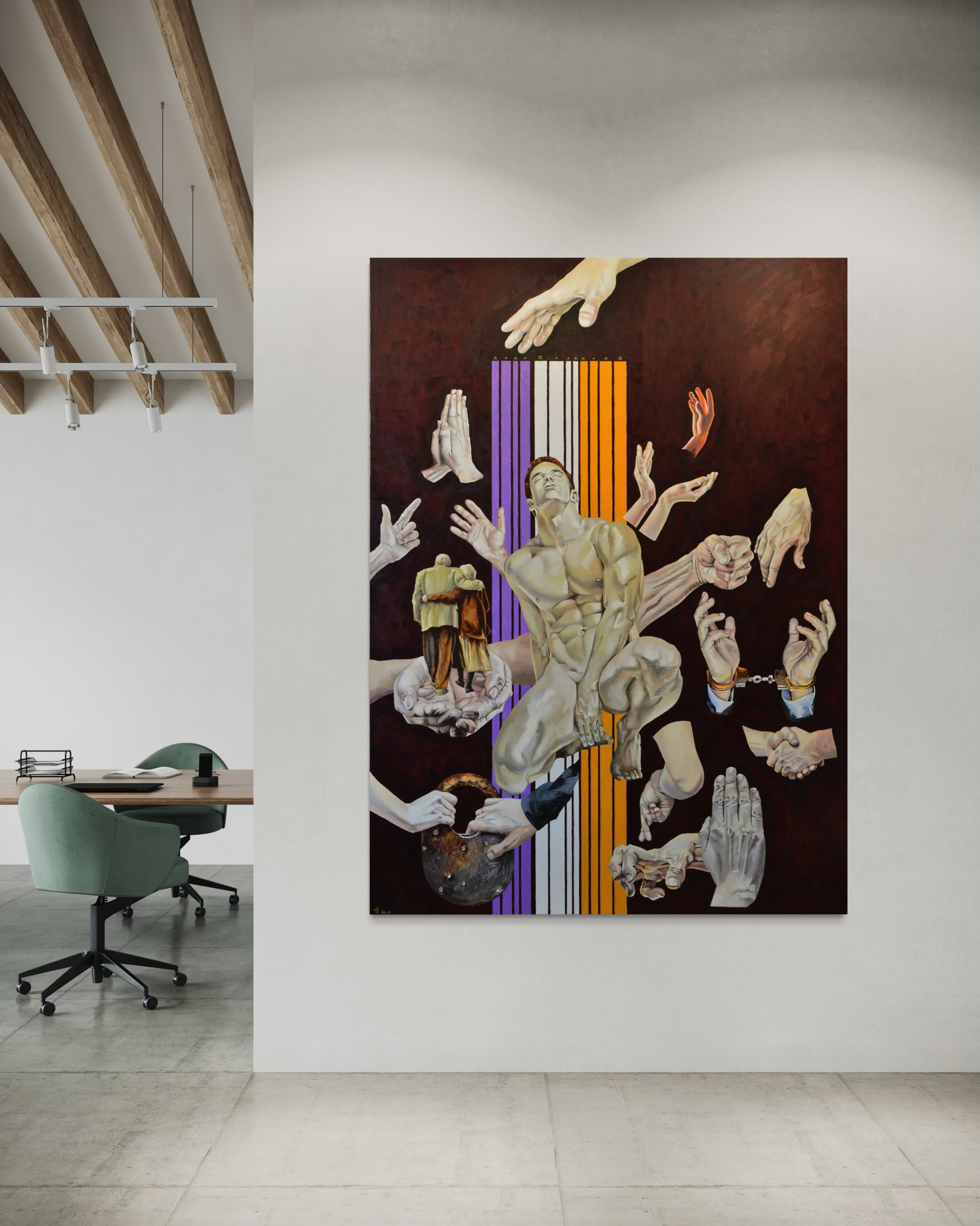 He rises through struggle, lifted by hands, and the quiet hope of becoming whole.