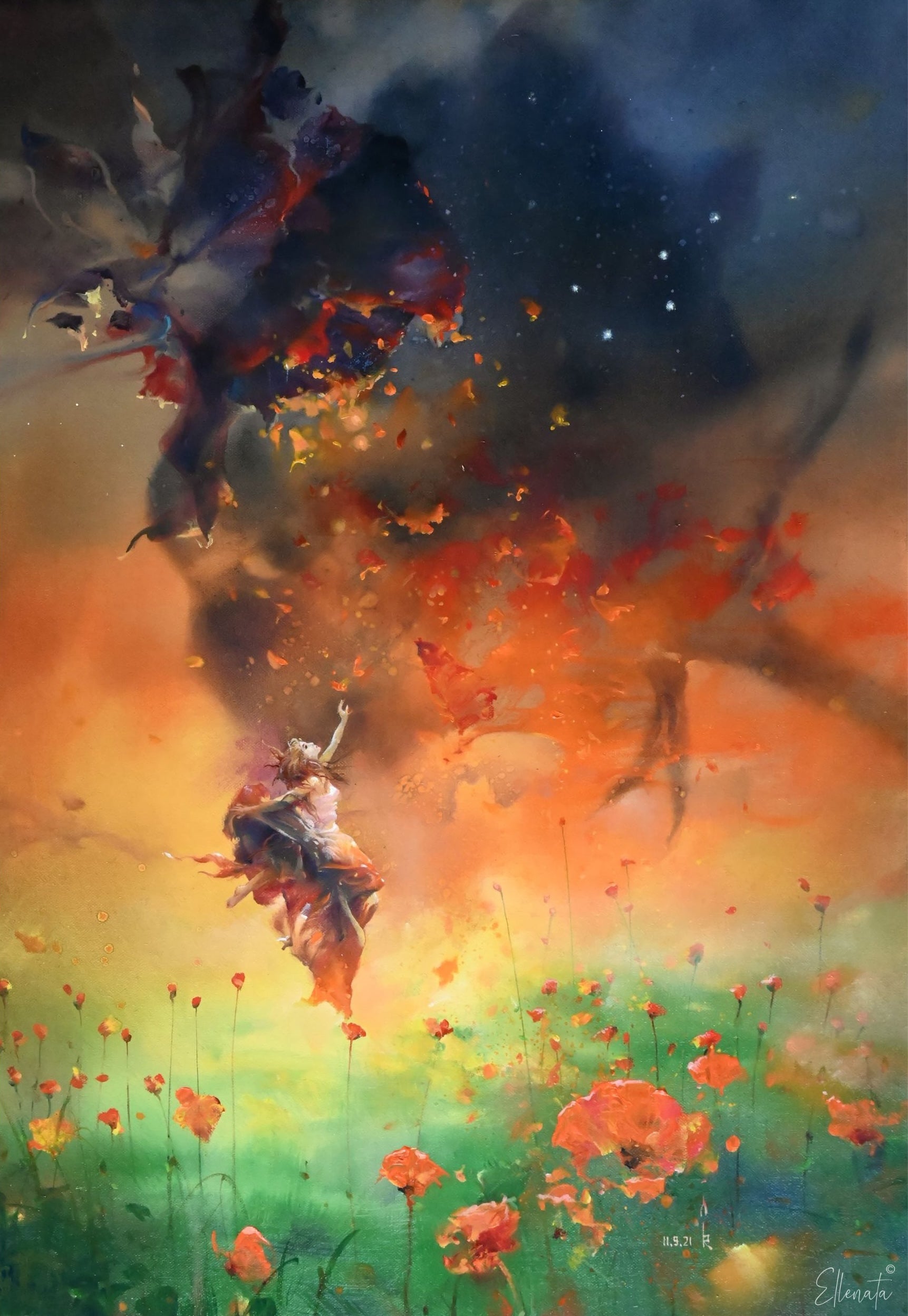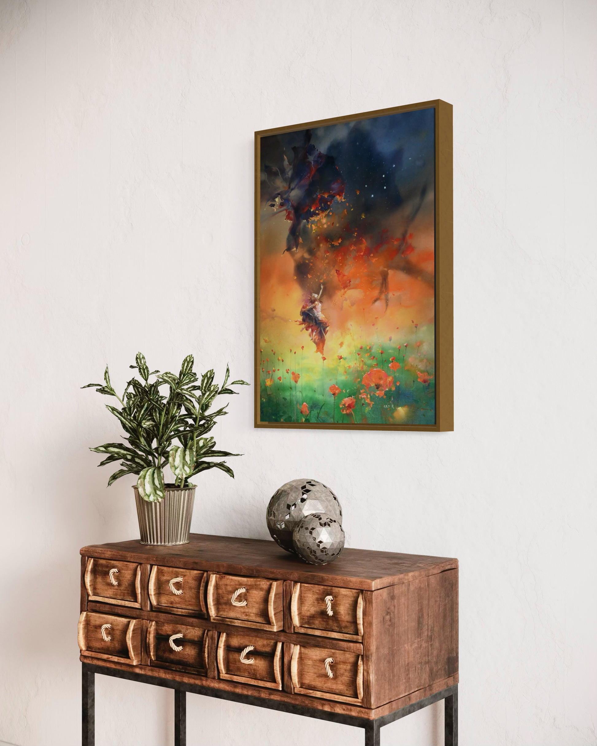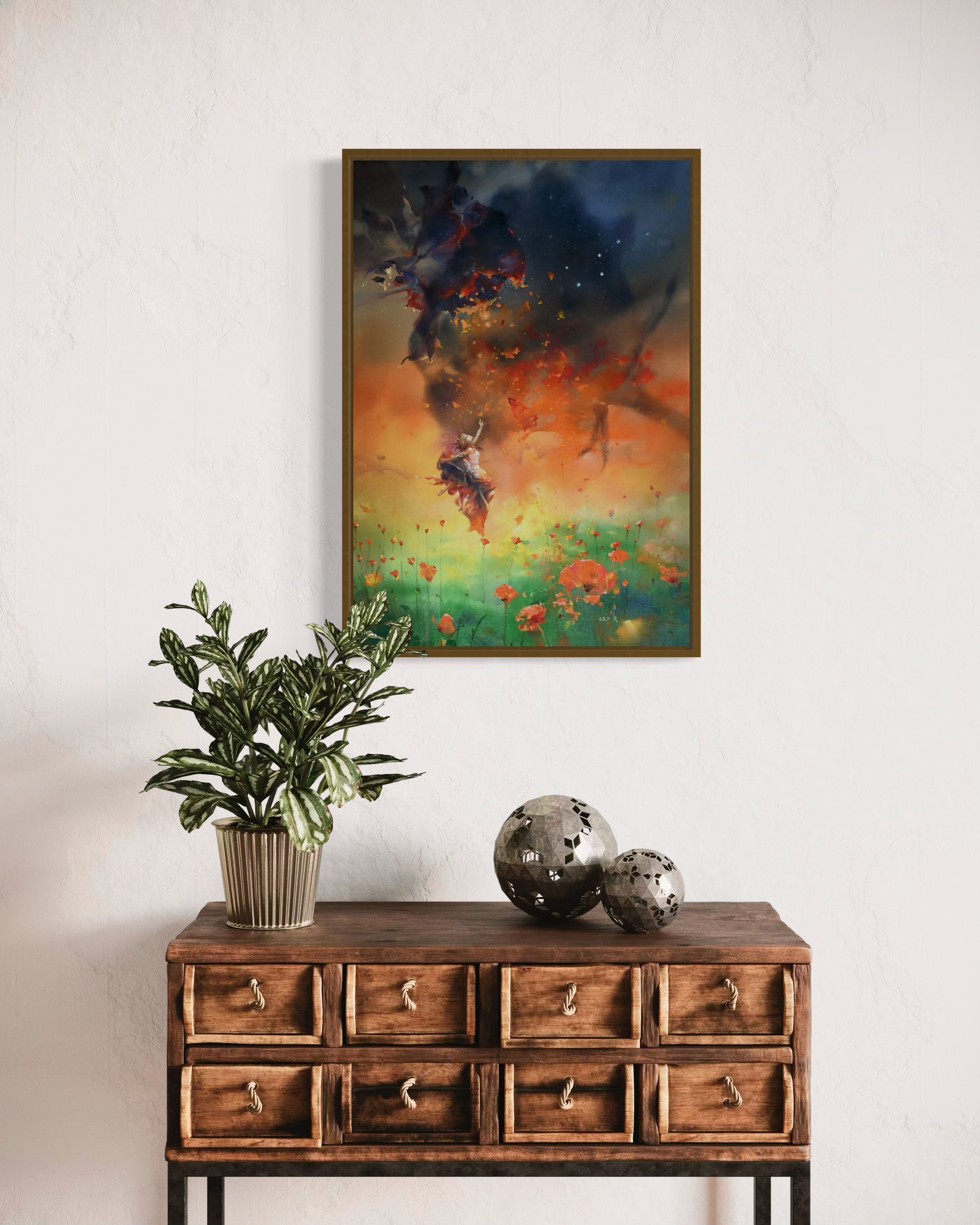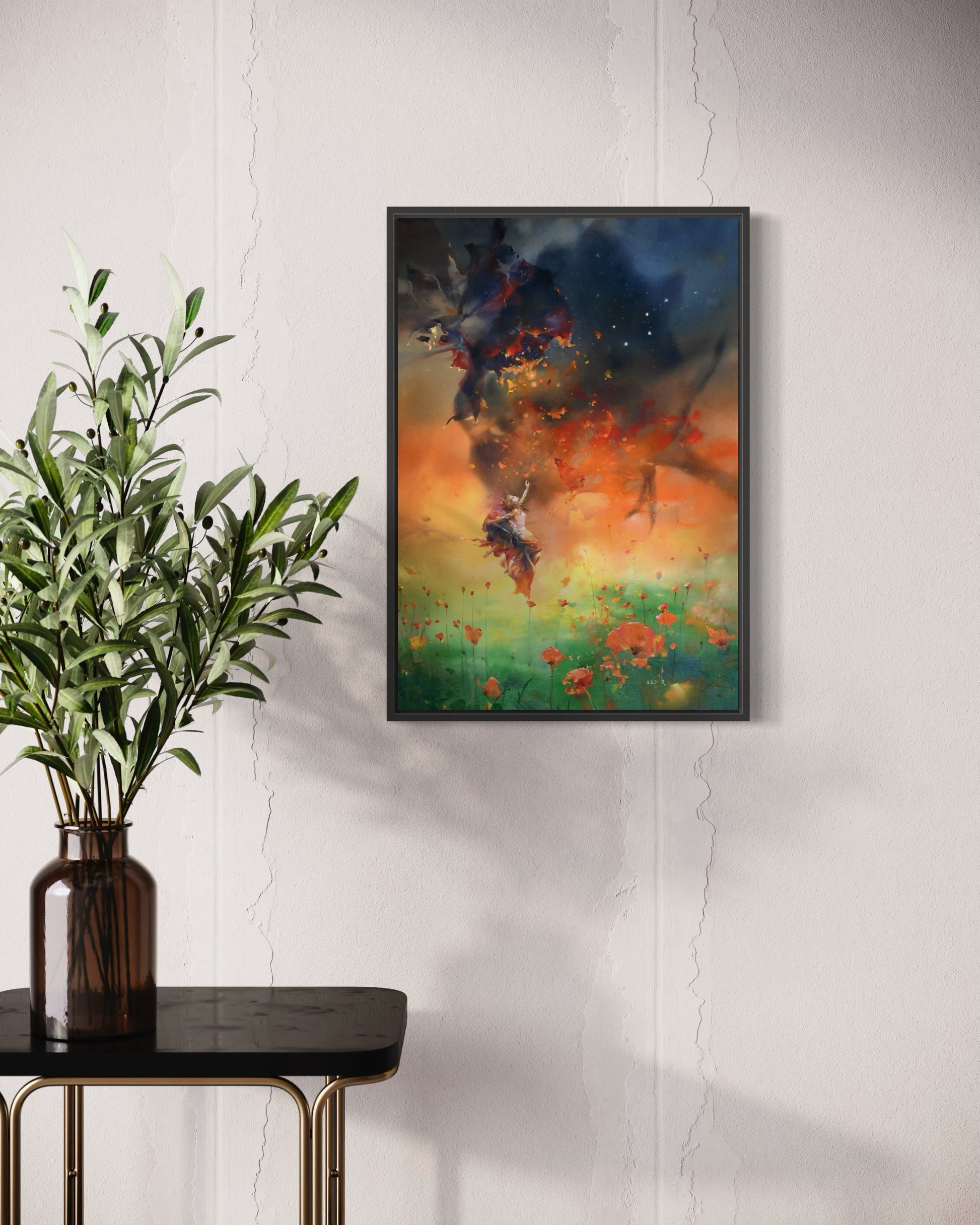 The sky cracked open, scattering petals like embers. In the middle of it all, a girl danced -not away from the fire, but into it, as if she knew the flowers were never falling, only rising.