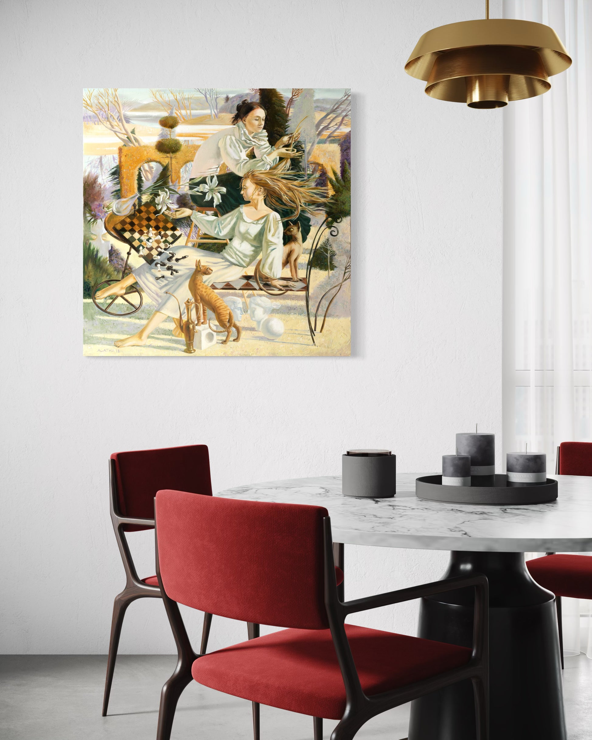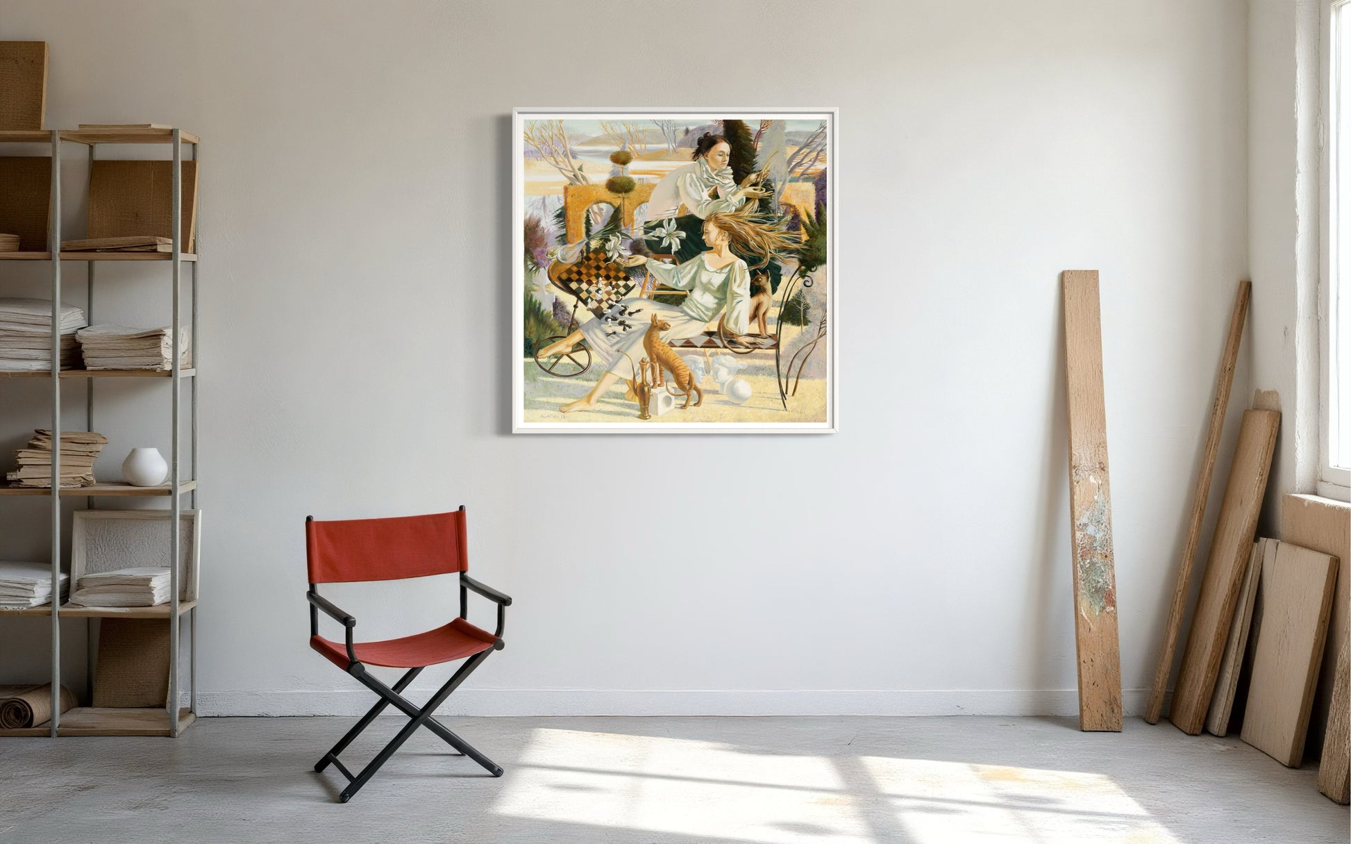 What happens when the wind joins the game? It tangles hair, scatters chess pieces, and carries whispers through the air. While the cats stay still, the world around them dances. Maybe the wind just wanted to play too.