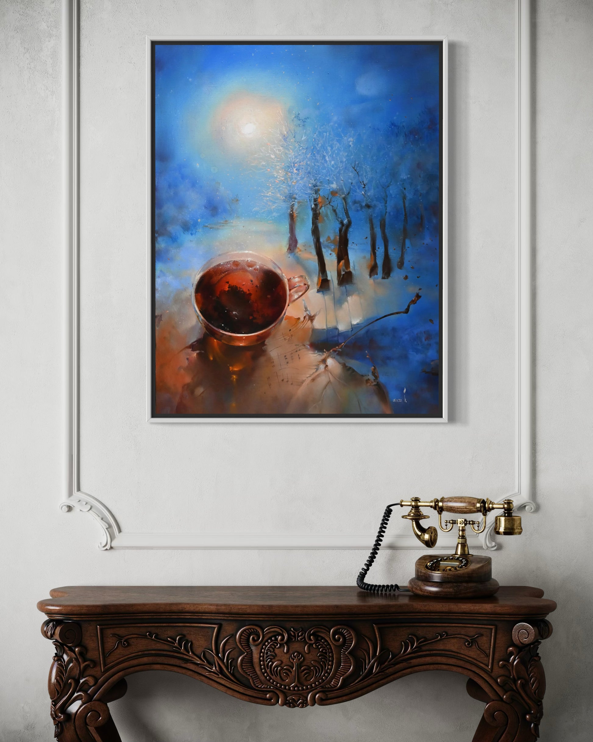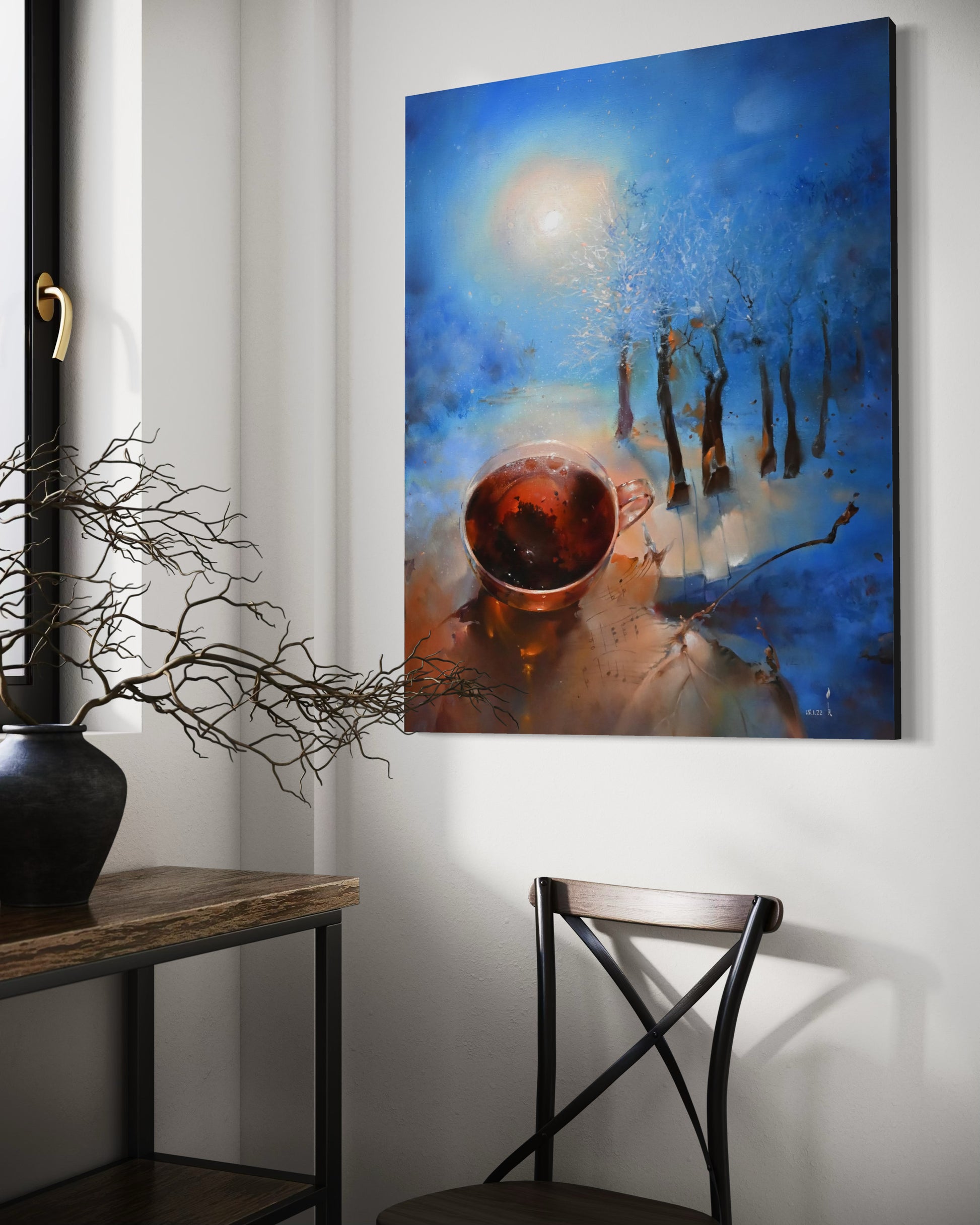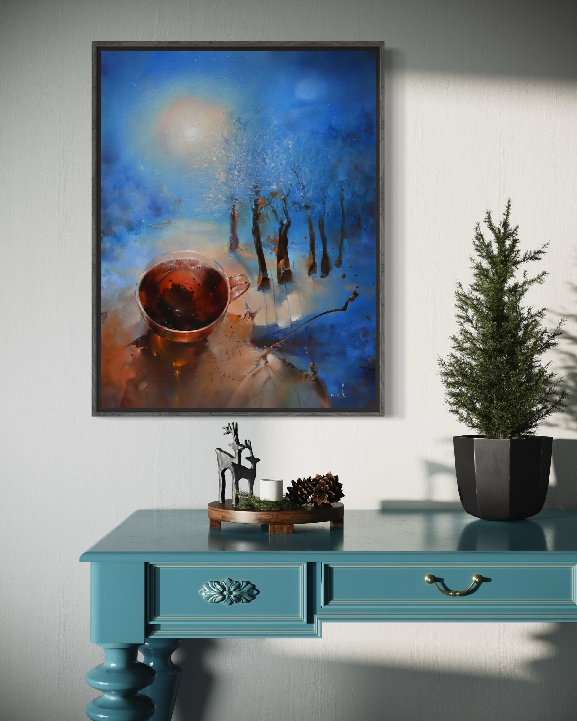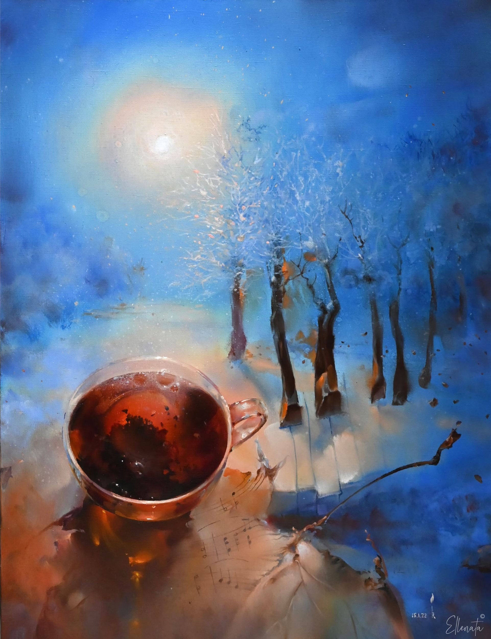 Steam rises from a quiet cup, warming fingers and memories alike. Outside, trees play a frozen melody on white keys of snow, as if winter wandered into summer just to listen.